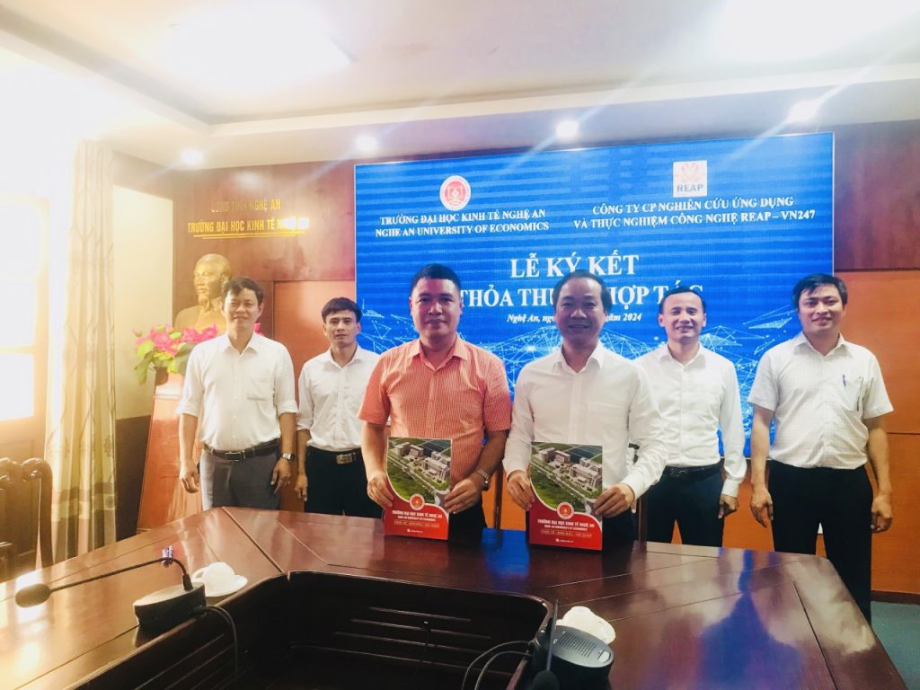 Vào sáng ngày 18/7/2024, Đại diện Lãnh đạo của Công ty Cổ phần nghiên cứu ứng dụng và thực nghiệm công nghệ REAP (REAP – VN247) đã đến thăm, làm việc và ký kết thỏa thuận hợp tác với Trường Đại học Kinh tế Nghệ An.