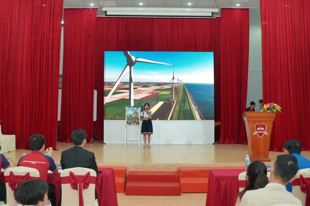 Các em đã được đánh giá dựa trên các tiêu chí như nội dung, sự sáng tạo, phong cách thể hiện, từ vựng, ngữ pháp tiếng Anh, kỹ năng phát âm… Ban giám khảo đặc biệt ấn tượng bởi sự tự tin, đam mê và khả năng truyền tải thông điệp của các thí sinh.